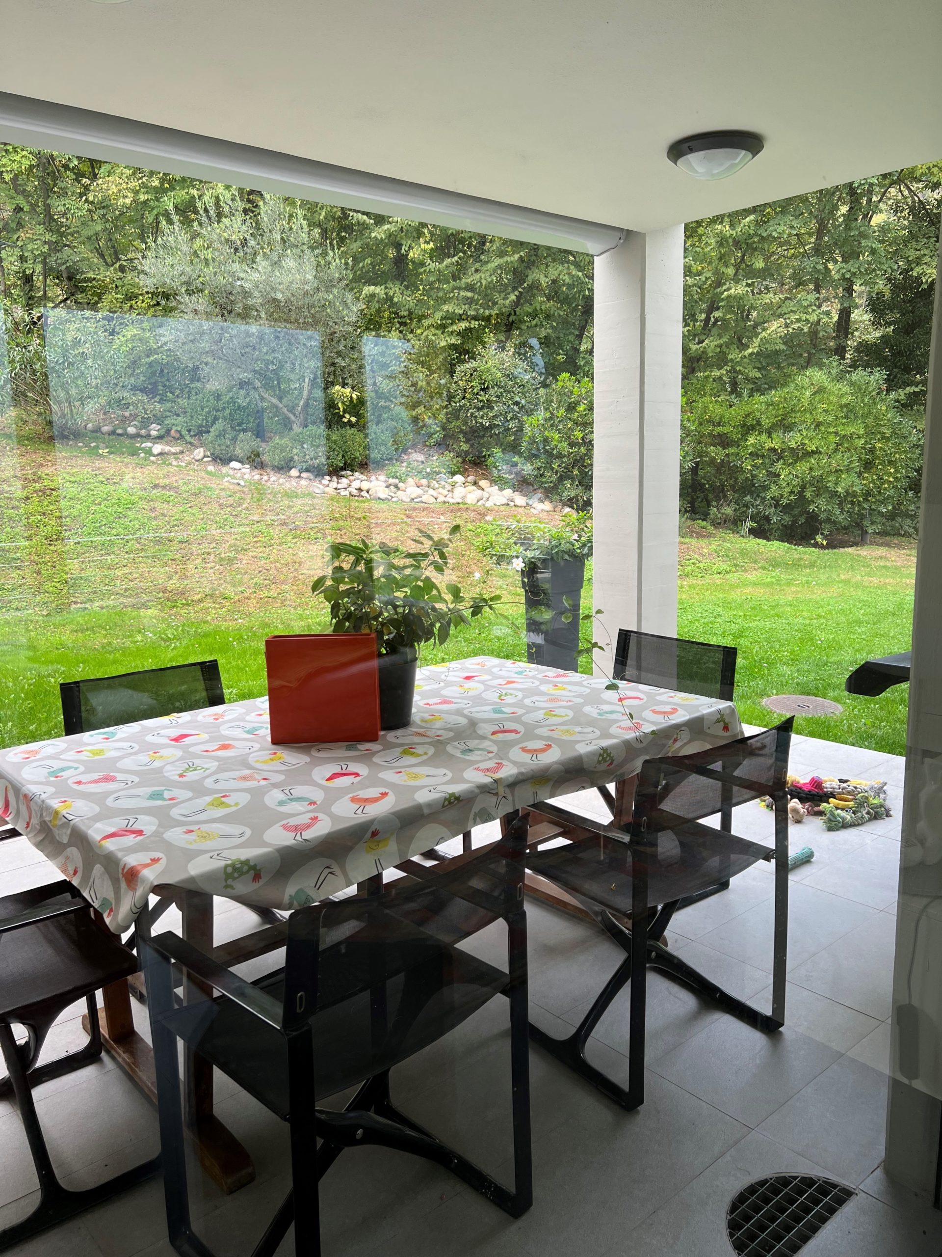 The Villa Lago Azzurro has been carefully designed to meet every need. The ground floor features a spacious dining and living area, a fully equipped modern kitchen, a bathroom and a second dining room ideal for entertaining guests and family. The large windows and the opening onto the garden allow you to enjoy the view of the lake and the surrounding landscape.